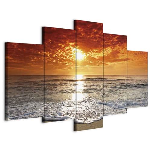 B&D XXL - Tableau décoratif moderne 200x100 cm - Impression sur toile colorée - Décoration murale pour salon et chambre - Paysage mer nature ciel sable plage soleil eau coucher de soleil 051401