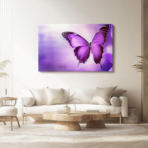 Impressions sur toile 100 x 50 cm (Sans cadre), Animaux Papillon Élégant Imperméable Tableau décoratif pour salon et chambre Decoration Murale Violet Image affiche