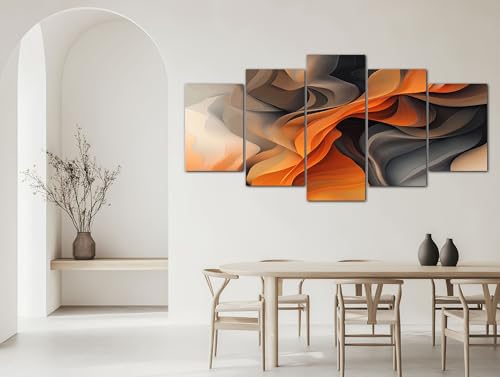 ZORYAN Impression sur Toile Géométrie Abstraite Des Fluides Tableau Décoratif Mural pour Salon et Chambre Couleur Orange Multi Panneau 5 Parties Toile Murale Moderne pour Cuisine et Maison 200x100 cm