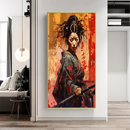 WZXGHE Images japonaises Samurai - Impression d'art - Portrait de samouraï rouge - Grand tableau décoratif mural - Pour salon et chambre à coucher - Sans cadre - B, 60 x 180 cm