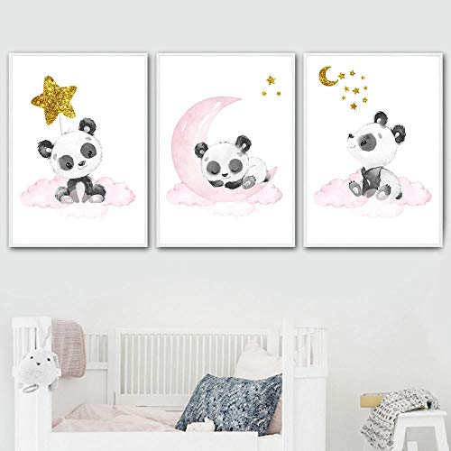 CNHNWJ Dessin animé Lune Panda pépinière Affiche Toile Tableau bébé Chambre Murale Art Style Nordique Belle Enfant Cadeau Decoration Chambre Dessins animés Tableaux 30x40cmx3 Pas de Cadre