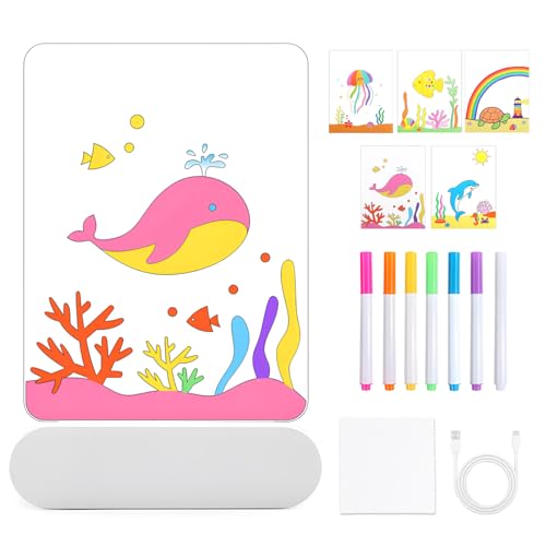 TXErfolg Tableau lumineux Message LED, 20x15cm Tableau Magique Acrylique Effaçable avec 6 Couleurs Stylo, DIY Tablette lumineuse Dessin Enfant, Cadeau Créatif Pour Garçons et Filles(Animaux marins)
