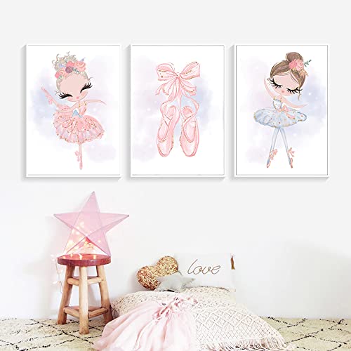 Youihom Lot de 3 Affiche Danse Fille Rose Illustration Poster Chambre Bebe a3 Tableau Dessin Enfant Decoration Murale Impression sur Toile Cadeau sans Cadre