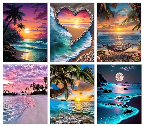 Diamond Painting Broderie Diamant Peinture 6 pièces Kit Complet en Perle a Coller Paysage Accessoires Canevas 5d Lot Tableau Enfant Adulte Strass Puzzle Dessin 30×40 Decoration Murale Chambre Cadeau