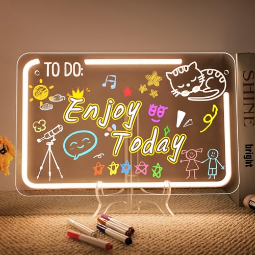 Tableau Lumineux Message LED,Tablette Lumineuse Dessin Enfant,Tableau Magique Acrylique Effaçable,avec 7 Couleurs Stylo,Support Réglable,pour D'écriture,Mémo