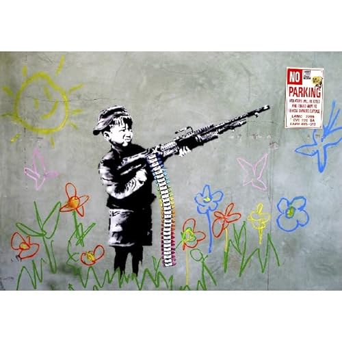 Homemania Tableau Inspirations des Auteurs Banksy Enfant - Décoration Art Home - Mur - Imprimé, Numérique, Dessin - Cadre - Multicolore, Bois, Coton 70 X 50 X 3
