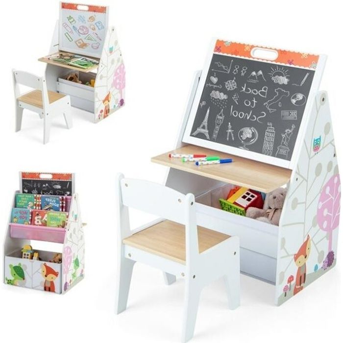 Tableau Enfant 3 en 1 - DREAMADE - Planche à Dessin Double Face - Bac de Rangement - Bibliothèque à 2 Etagères - 3-6 Ans - Blanc