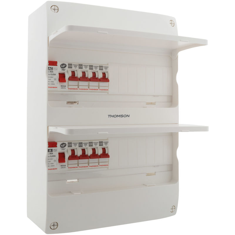 Thomson – Coffret électrique pré-équipé 2 rangées 26 modules – Montage sur GTL ou mur – Tenue au fil incandescent 650°C – Disjoncteurs jusqu'à 32A