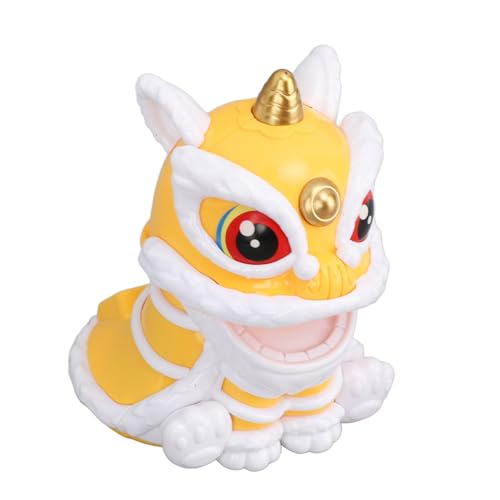 OEBUAFI Lion D'éveil Solaire, Décoration de Lion à énergie Solaire, Hochant la Tête pour Tableau de Bord de Voiture avec Matériau ABS, Porte-Bonheur de Style Chinois Traditionnel (Yellow)