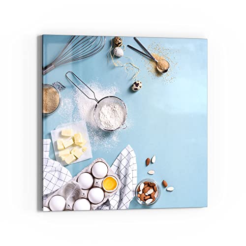 DEQORI Tableau magnétique en verre - 30 x 30 cm - Motif ingrédients de cuisson - Tableau mémo en verre - Avec aimants, stylo et chiffon pour cuisine et bureau - Tableau magnétique et inscriptible