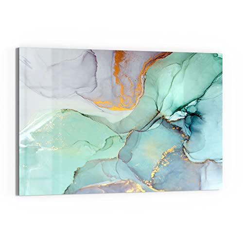 DEQORI Tableau magnétique en verre - 60 x 40 cm - Motif aquarelle déroulée - Tableau mémo en verre - Avec aimants, stylo et chiffon pour cuisine et bureau - Tableau magnétique et inscriptible
