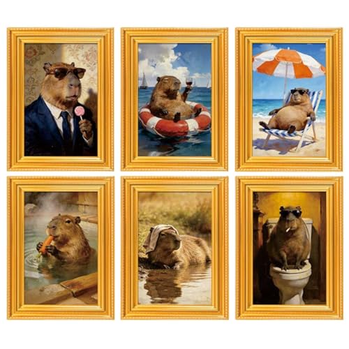 Capybara Lot de 6 aimants de réfrigérateur en forme d'animal, accessoire de décoration de tableau mémo, autocollant magnétique pour tableau blanc, casier de cuisine, appartement, organisateur de
