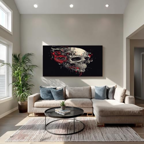 Tableau Mural Crâne noir blanc 70x140cm Impression sur Toile XXL Décoration Murale Moderne Grand Format pour Salon Chambre Bureau Cuisine Maison Tableau Sans Cadre Art