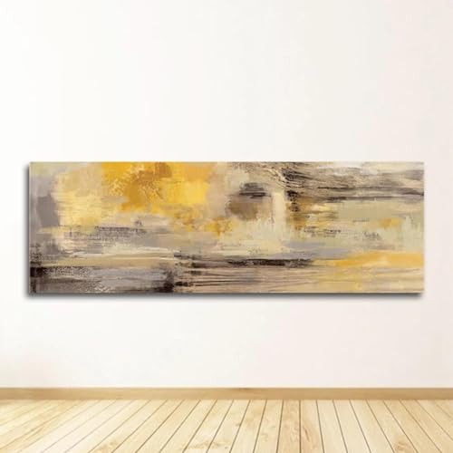 Tableau d'art mural pour salon, affiches et impressions de décoration d'intérieur, peinture sur toile abstraite jaune doré 50 x 150 cm (20 x 59 pouces) sans cadre