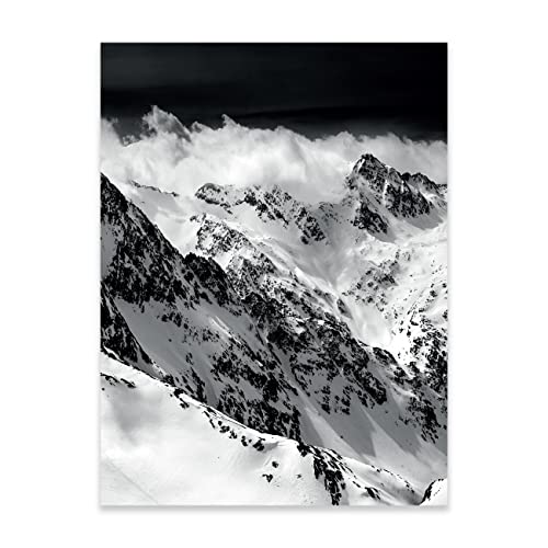 WallArena Poster mural noir et blanc - Motif montagnes - 30 x 40 cm - Sans cadre - XXL - Impression d'art - Tableau mural sur poster pour salon, chambre à coucher, cuisine