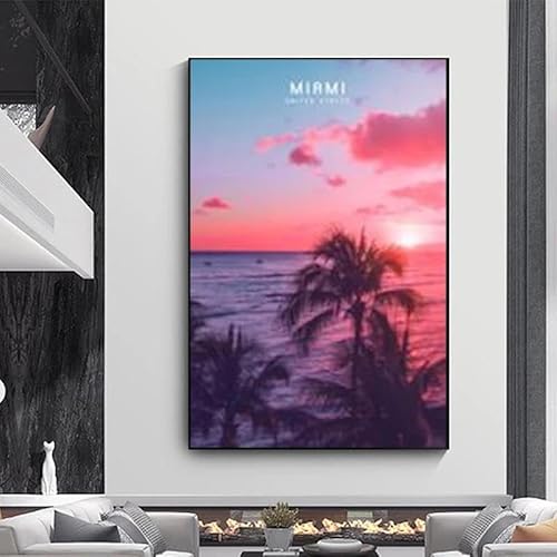 TANYANG Toile D'Art Moderne, Peinture De Grande Ville De Miami, Affiches Et Imprimés, Tableau D'Art Mural Pour Salon, Décoration De La Maison 60X90Cm Sans Cadre