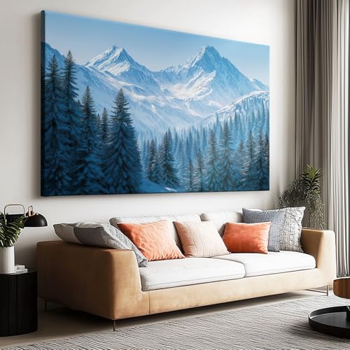 Tableau sur Toile Design 120L x 60l cm Moderne Forêt Scène Enneigée Montagnes, Décoration Murale Moderne Encadrée Paysage Naturel pour Salon et Chambre - Impression Haute Définition Prête à Accrocher