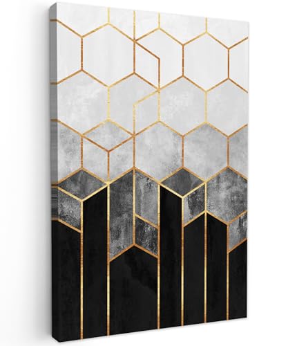 MuchoWow© Impression sur Toile Photo Peinture 40x60 cm Tableau Decoration Murale Chambre Salon Maison Deco Cuisine Or - Hexagone - Chic - Motifs - Luxe