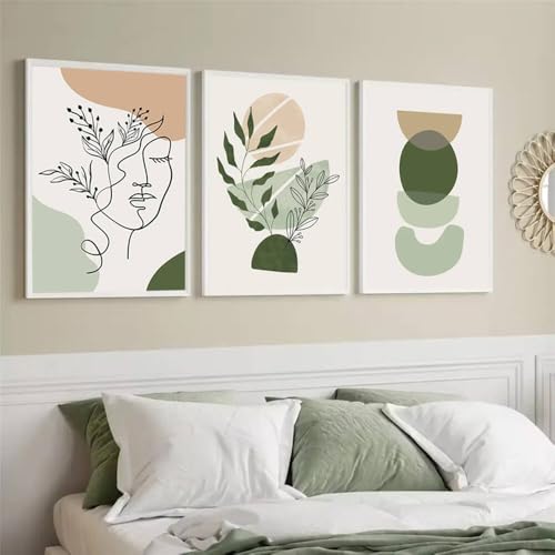 BeiYiHo 3 Affiches Abstrait Vert 30x40 Tableau Boheme Chic Salon Cuisine Poster Geometrique Visage Femme Abstrait Impression sur Toile Decoration Chambre Adulte Boho Vert d'eau (BYC-30x40)