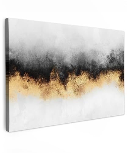 MuchoWow© Impressions sur Toile 120x80 cm Deco Tableau Murale Decoration Salon Peinture Tableaux Chambre Toiles Maison Or - Chic - Abstrait - Noir - Blanc - Luxe
