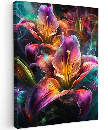 MuchoWow© Impressions sur Toile 80x60 cm Deco Tableau Murale Decoration Salon Peinture Tableaux Chambre Toiles Maison Fleurs - Coloré - Noir - Art - Abstrait - Chic
