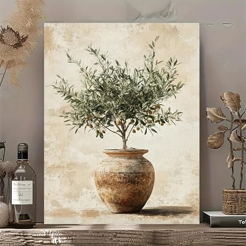 LTjiajuypd Tableau imprimé sur toile représentant un olivier chic dans un vase, décoration murale artistique pour salon, chambre, bureau et autres pièces de décoration intérieure (35 x 50 cm)