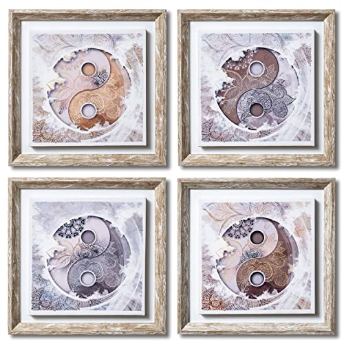 DekoArte - Tableau Decoration Murale Salon YING YANG MANDALA 30 x 30 cm x 4 pièces - Set de tableau avec cadre Shabby chic.