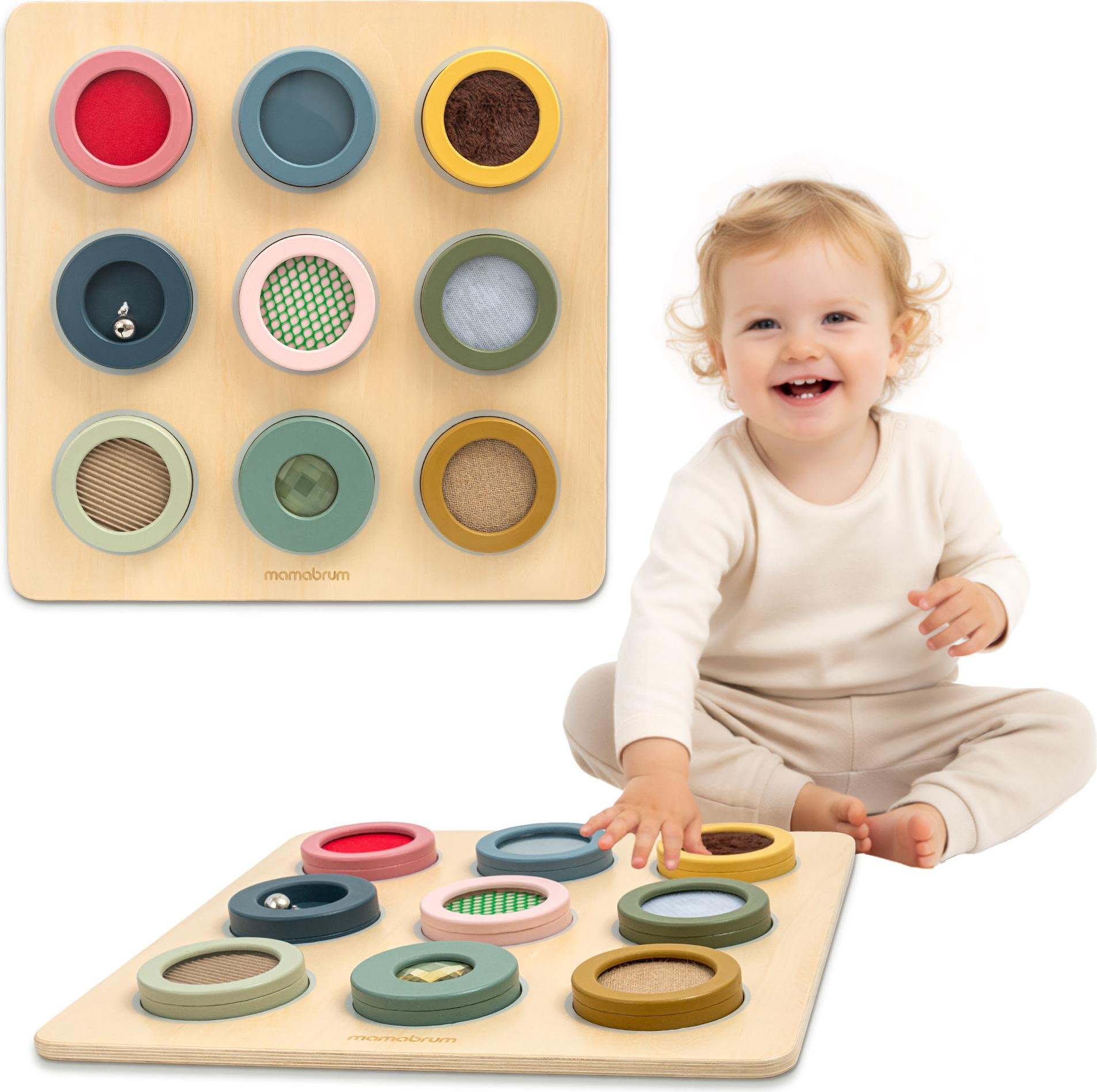 Tableau sensoriel Montessori en bois - 9 textures différentes à toucher et à découvrir | Mamabrum