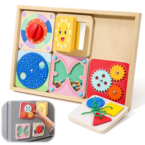 TTLIFE Tableau occupé Montessori Plateau Jeu sensoriel Apprentissage la motricité Fine Planches dactivités sensorielles en Bois