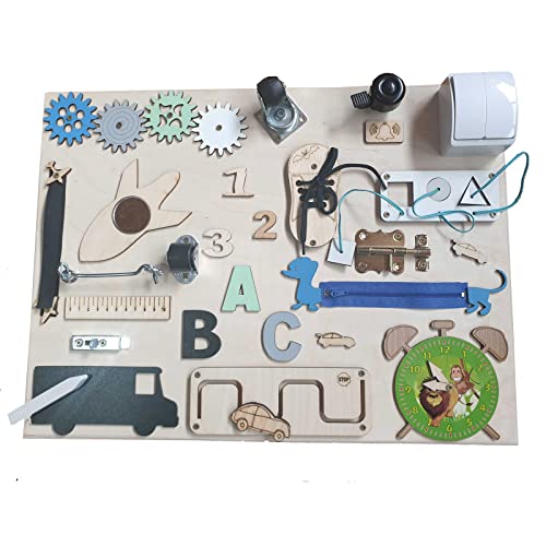 - - Busy Board Montessori, Jouets en Bois pour Enfants Jeux Montessori pour Apprendre La Motricité Fine, Tableau Sensoriel Educatif avec des Boucles,