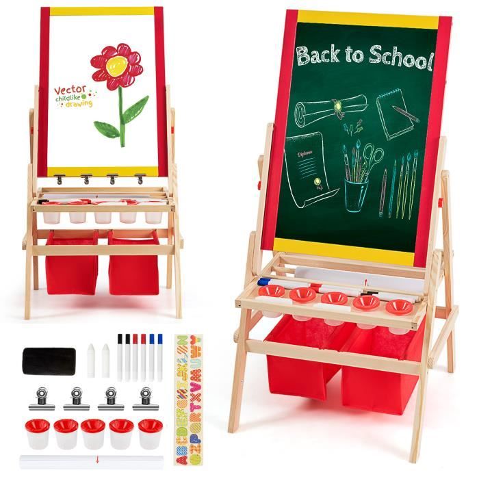 Tableau Chevalet Multifonctions 2 en 1 en bois Double Face Planche à Dessin dArt pour Enfant sur Pied- Tableau Blanc et Tableau N