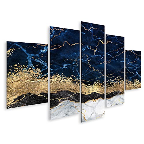 DRW Tableau sur Toile Abstrait en Bleu et doré 70 x 100 x 3,7 cm
