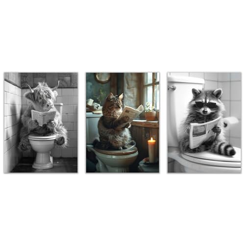 WQBQKKX Lot De 3 Tableau Animal Animal mignons et drôles Affiche Moderne Toile Tableau,Gris, blanc Tableaux,Posters Arts DéCoratifs Pour La,Salon,Chambre- 40x60cmx3 Sans cadre