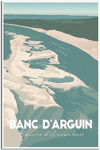 Tableaux décoratifs Banc D'Arguin France Vintage Voyage Affiche Images Décoratives pour Salon Décor Mur Art Sans cadre 60x90cm