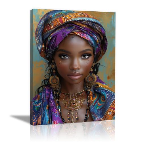 WQBQKKX Tableau Africain Portrait de femme noire Affiche Moderne Toile Tableau,Violet, or Tableaux,Posters Arts DéCoratifs Pour La,Salon,Chambre-70x100cm Encadrée