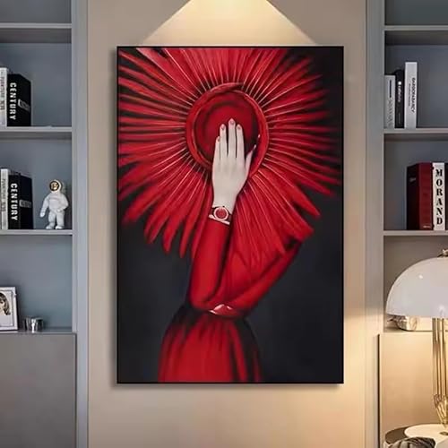 BMGKYAGL Affiches et impressions d'art moderne, peintures sur toile, tableaux décoratifs pour le salon, femme abstraite moderne en robe rouge (50x70cm/cadre intérieur)