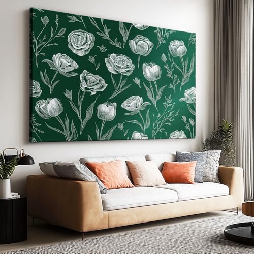 Générique Impression sur Toile avec Cadre Roses Vert Foncé 120x80cm Tableau Décoration Murale Modern, Image Art Grand Tableaux Décoratifs pour Salon Chambre Salle de Bain