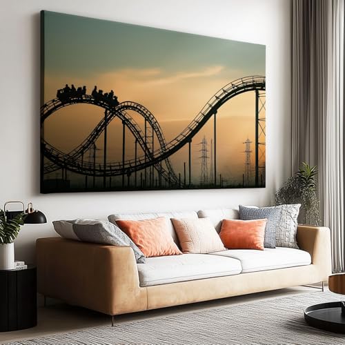 Générique Impression sur Toile avec Cadre Montagnes Russes Du Parc D'Attractions Sunset 140x70cm Tableau Décoration Murale Modern, Image Art Grand Tableaux Décoratifs pour Salon Chambre Salle de Bain