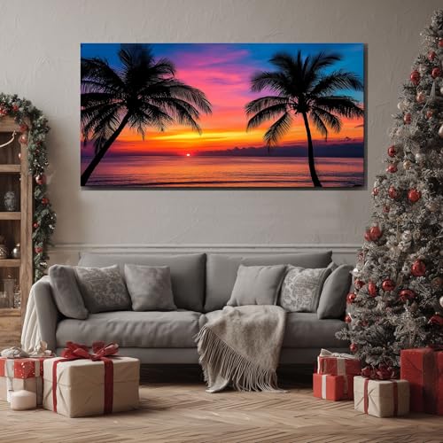ZORYAN Tableaux Posters et Arts Décoratifs Côtier Coucher de soleil Grande Toile Murale pour Salon Silhouette Palmier Cadre Decoratif Chambre Paradis Mer Tableau Impression pour Maison 70x140 cm