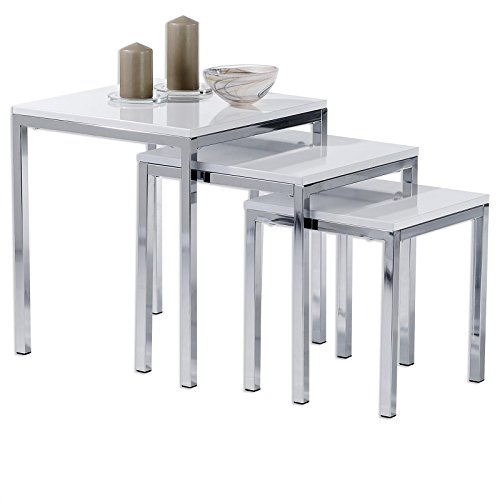 IDIMEX Tables Basses de Salon Luna Tables à café Bouts de canapé Design Moderne Blanc Brillant et Cadre en métal chromé 40 x 45 x 40 cm