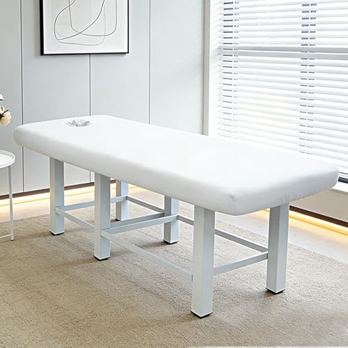 Highdi Housse Table de Massage avec Trou de Visage, Elastique Drap Housse Table de Massage Réutilisables Douce | pour Tables de Beauté Salon Spa -180x60cm, Blanc