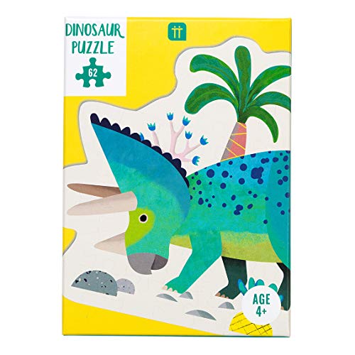 Talking TablesPuzzle et affiche de dinosaure en forme de tricératops bleu et vert de 62 pièces | Pour les enfants, les enfants | Illustré, amoureux des dinosaures jurassiques, cadeau d'anniversaire
