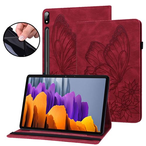 Étui FOXDOCK pour tablette Samsung Galaxy Tab S9 Butterfly Design Premium Cuir Anti-Fall Protection Tablet Cover avec emplacements de carte et fonction du support-Rouge