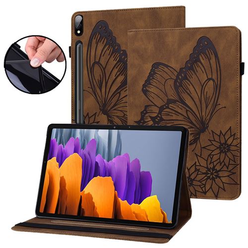 Étui FOXDOCK pour tablette Samsung Galaxy Tab S9 Ultra Butterfly Design Premium Cuir Anti-Fall Protection Tablet Cover avec emplacements de carte et fonction du support-Marron