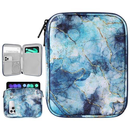 Dadanism 8-9 Pouces Tablette Housse Pochette Compatible avec iPad Mini 7/6 8,3" 2024/2021, iPad Mini 5/4/3/2/1 7,9", Galaxy Tab A7 Lite 8,7"/Tab A 8,0", Tab M8 (4/3/2) 8", Tab M9 9" 2023, Marbre Bleu