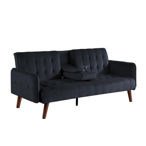Canapé 3 places convertible avec tablette centrale rabattable noir INVERNESS