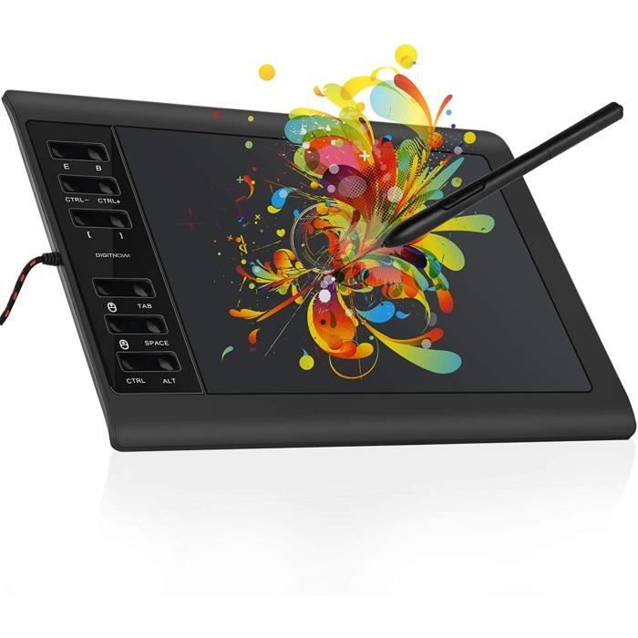 10x6 Pouces Tablette Graphique avec Stylet Passif 8192 Niveaux de Pression 12 Raccourcis Dessin Compatible Windows Mac Linux Android