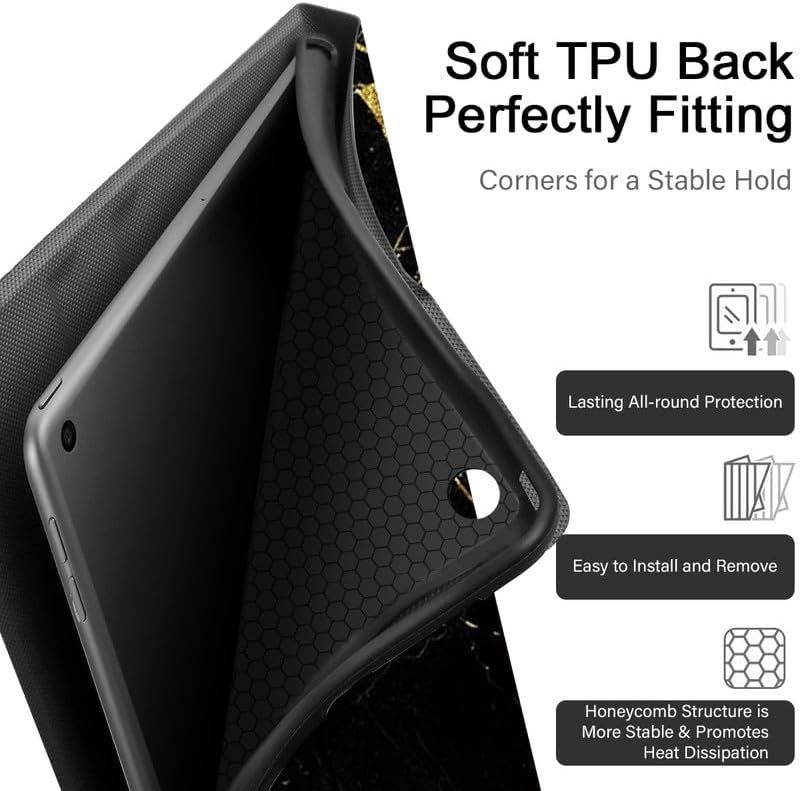 Foonary Coque Compatible avec Samsung Galaxy Tab A 10,1" 2019, Aesthetic Ultra Fin en Cuir PU Antichoc avec Étui Housse Protection Fonction Support Tablette Case Cover, Noir Or Marbre