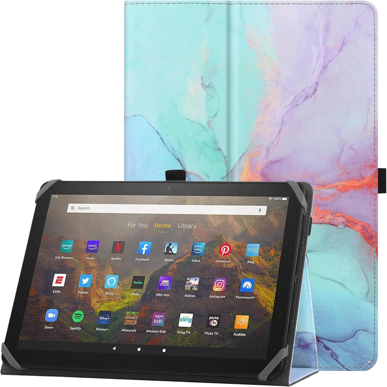 Étui Universel Pour 910.1"" Tablette Fire Hd 10 2021/2023 & Fire Hd 10 Plus 2021/2023 Avec Support Et Dragonne Housse De Protection Pour 9""10.1"" Samsung Lenovo Android Tablette Marbre Bleu