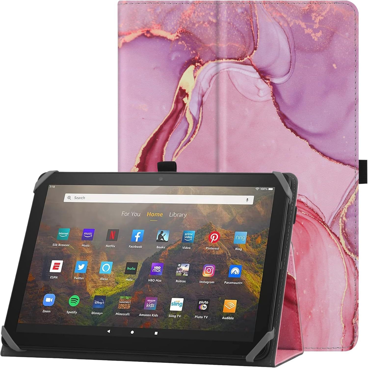 Étui Universel Pour 1011 Pouces Tablette Fire Max 11 2023 Coque Avec Support Et Dragonne Housse De Protection Pour 10""11"" Samsung Lenovo Huawei Android Tablette Marbre Rose